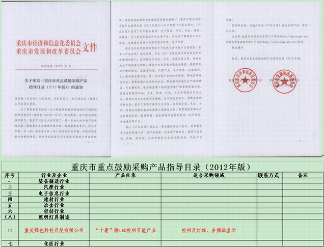 產(chǎn)品納入重慶市重點(diǎn)鼓勵(lì)采購(gòu)產(chǎn)品指導(dǎo)目錄