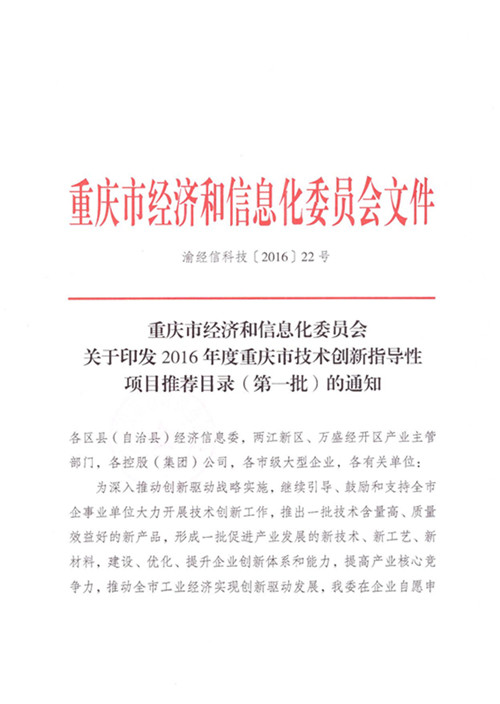 熱烈祝賀重慶綠色科技開(kāi)發(fā)有限公司申報(bào)的“互聯(lián)網(wǎng)+”多色溫防霧霾、亮度遙調(diào)新一代LED路燈及遠(yuǎn)程智能控制系統(tǒng)成功列入《2016年度重慶市技術(shù)創(chuàng)新指導(dǎo)性項(xiàng)目》