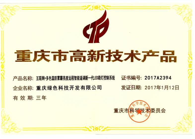 我司研發(fā)、制造的“互聯(lián)網(wǎng)+多色溫防霧霾亮度遠程智能遙調(diào)新一代LED路燈控制系統(tǒng)”榮獲市高新技術(shù)產(chǎn)品認(rèn)證