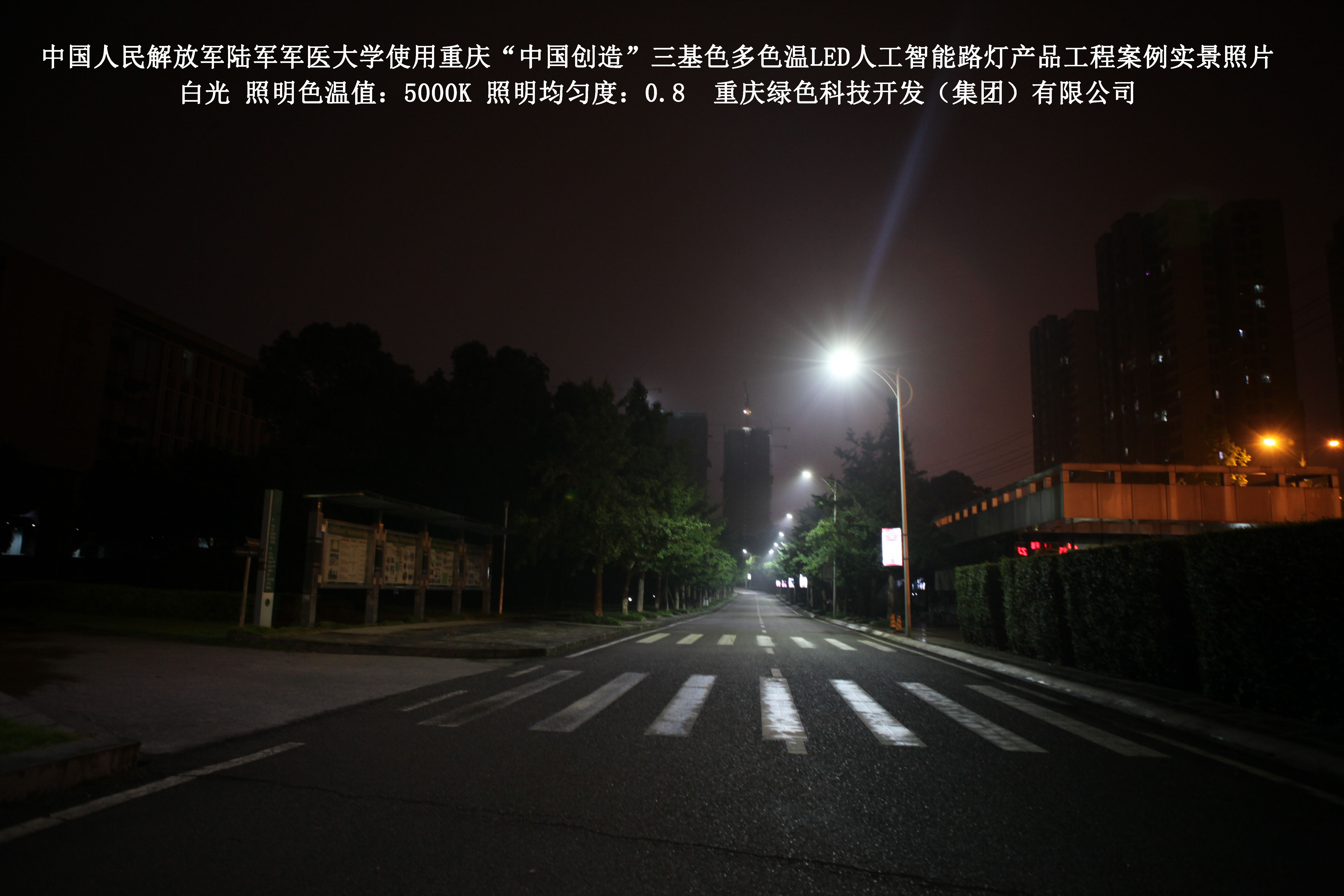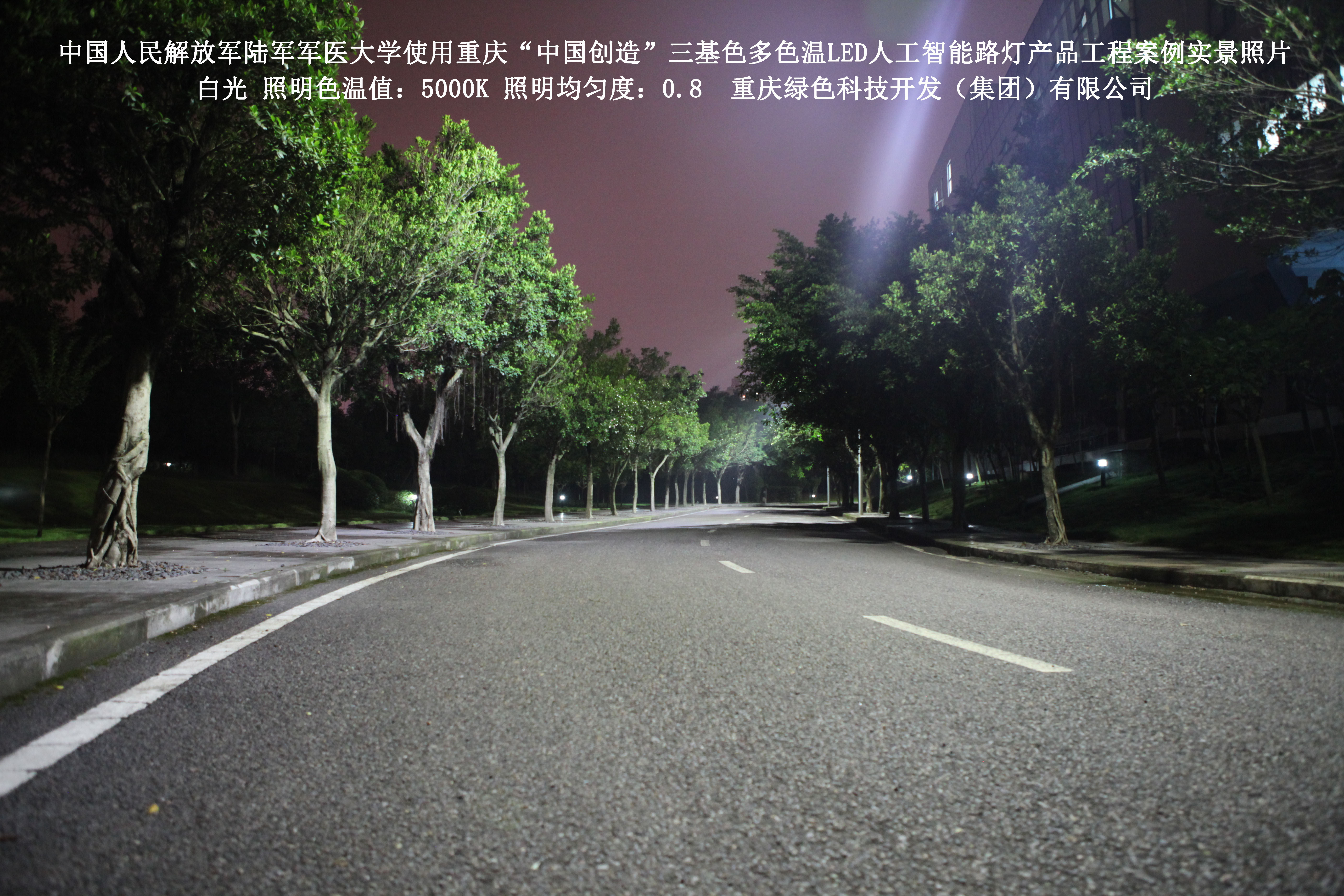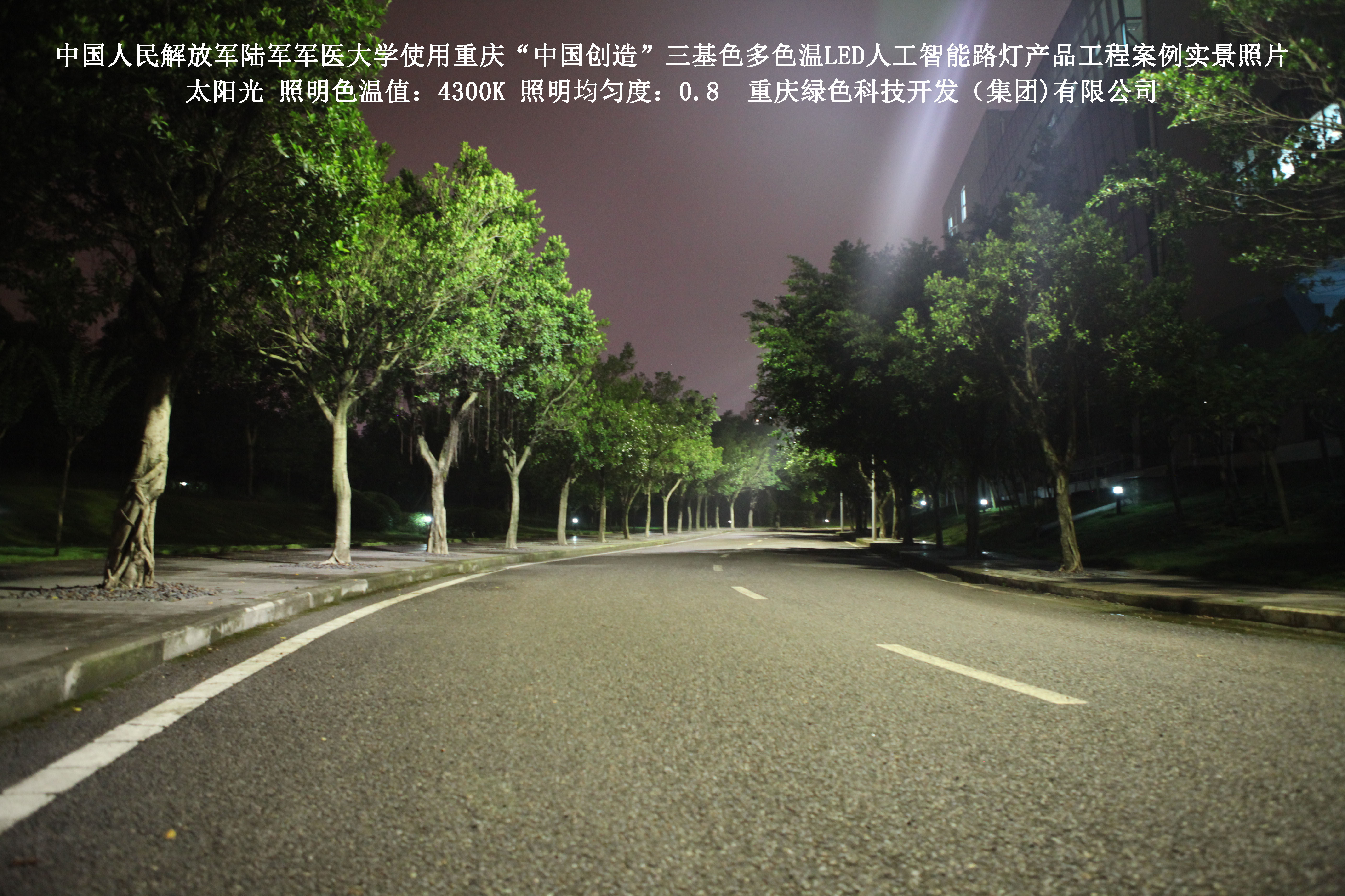 2018年4月,中國人民解放軍陸軍軍醫(yī)大學(xué)使用了我司研發(fā)制造的重慶“中國創(chuàng)造”三基色多色溫LED人工智能路燈,對沙坪壩大學(xué)城校區(qū)道路實(shí)施了綠色照明科技節(jié)能改造工程,該工程已全面竣工。工程實(shí)施后,極大地提高了照明清晰度、燈光均勻度、舒適度,實(shí)現(xiàn)城市路燈照明系統(tǒng)的智能化管理。