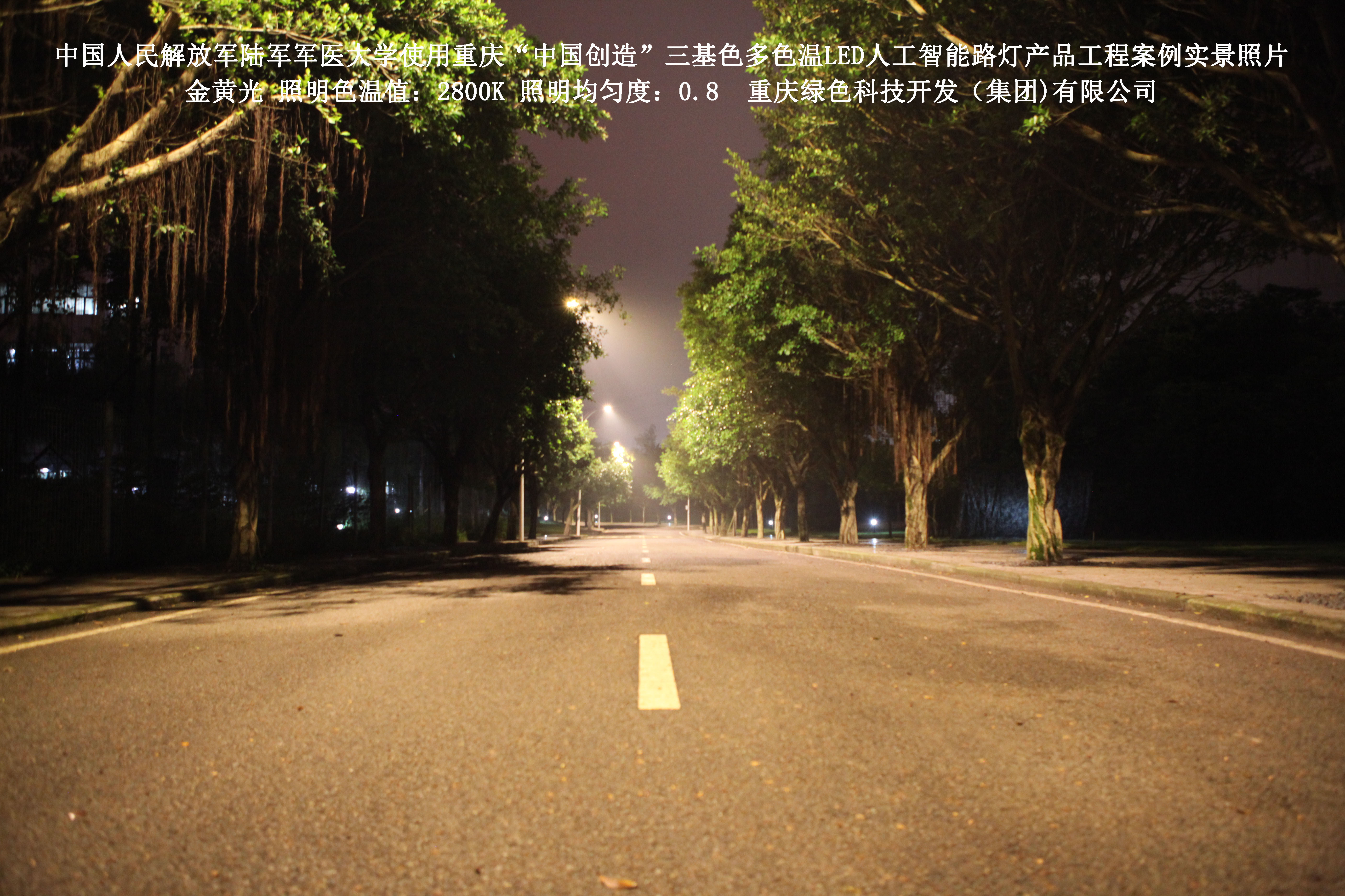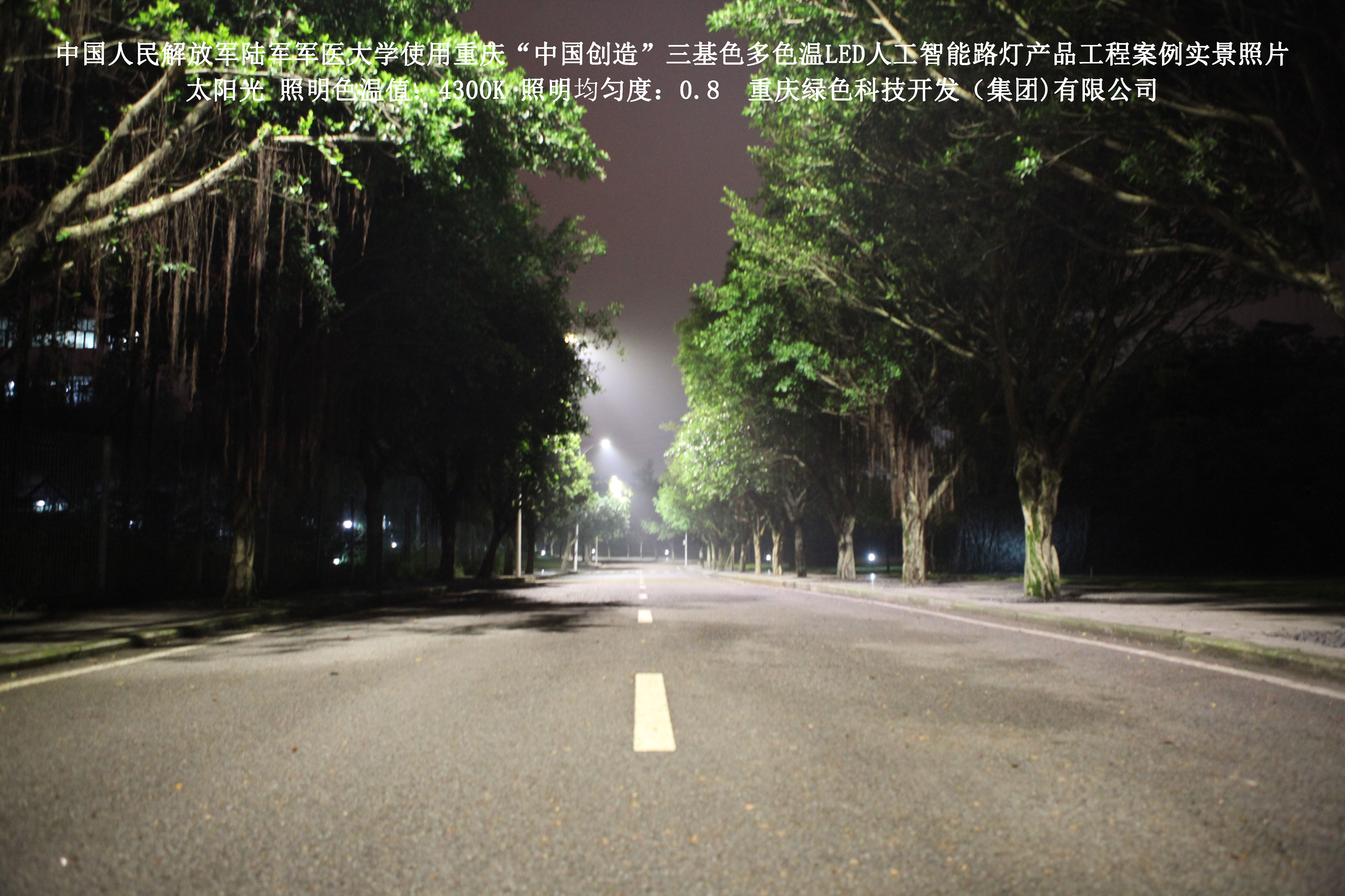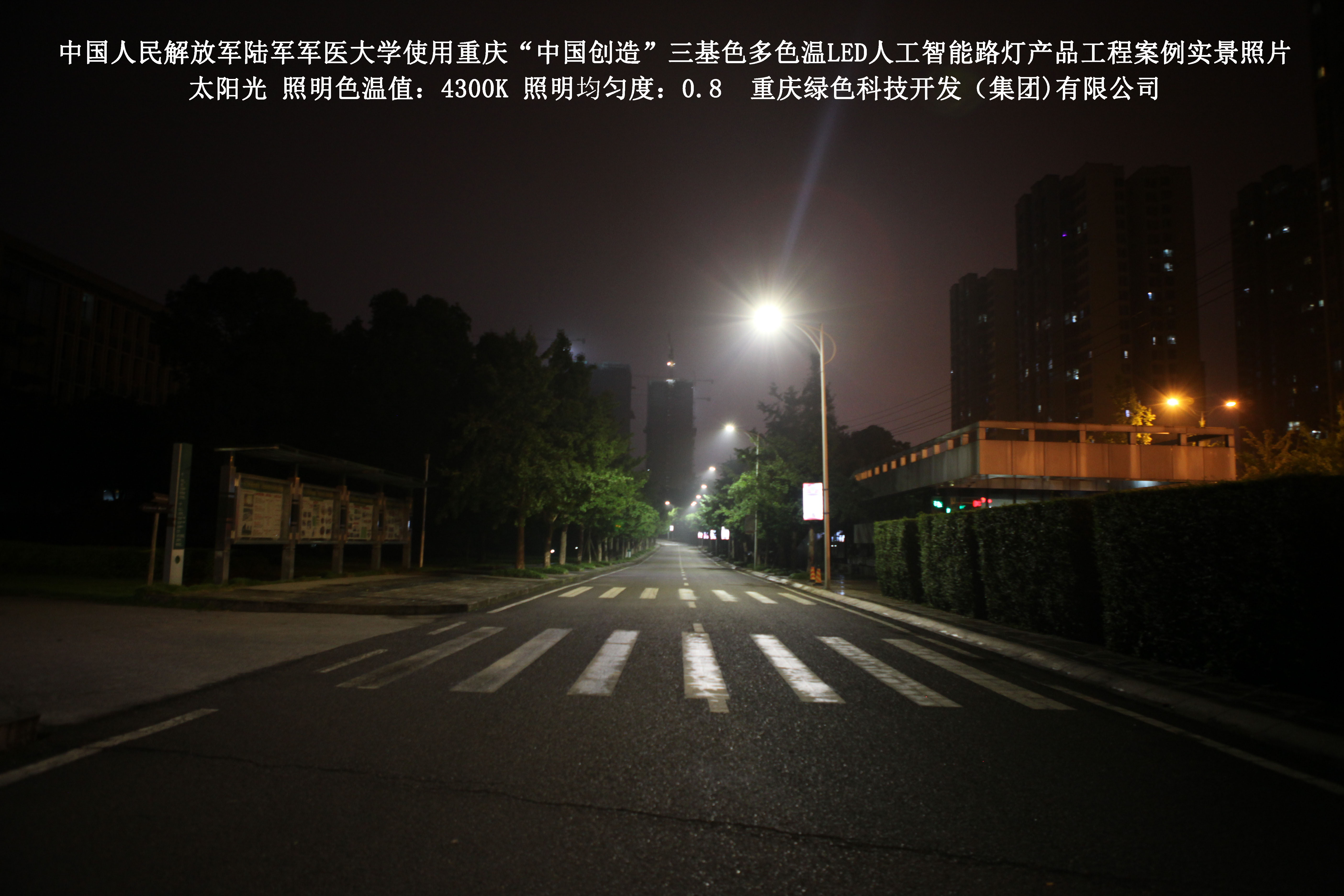 2018年4月,中國人民解放軍陸軍軍醫(yī)大學(xué)使用了我司研發(fā)制造的重慶“中國創(chuàng)造”三基色多色溫LED人工智能路燈,對沙坪壩大學(xué)城校區(qū)道路實(shí)施了綠色照明科技節(jié)能改造工程,該工程已全面竣工。工程實(shí)施后,極大地提高了照明清晰度、燈光均勻度、舒適度,實(shí)現(xiàn)城市路燈照明系統(tǒng)的智能化管理。