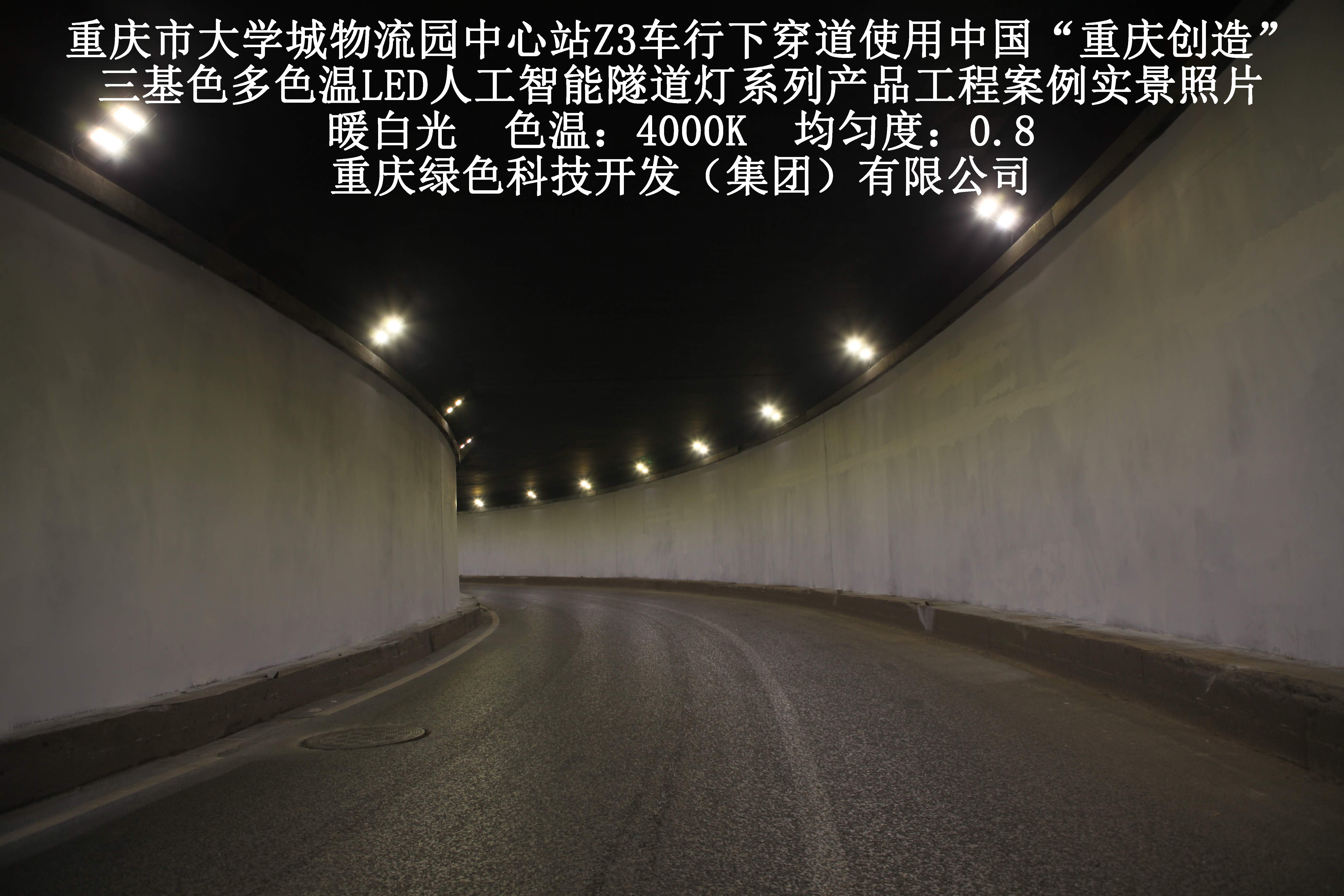 2019年3月,重慶市大學(xué)城物流園中心站Z3車行下穿道使用我司自主研發(fā)制造的,重慶“中國創(chuàng)造”三基色多色溫LED人工智能隧道燈系列產(chǎn)品,實施了市政設(shè)施品質(zhì)提升工程(工程案例實景照片附后)。此項目的實施,極大地提高了隧道內(nèi)照明清晰度、燈光均勻度、舒適度及照明安全性,實現(xiàn)了隧道照明系統(tǒng)的智能化管理。