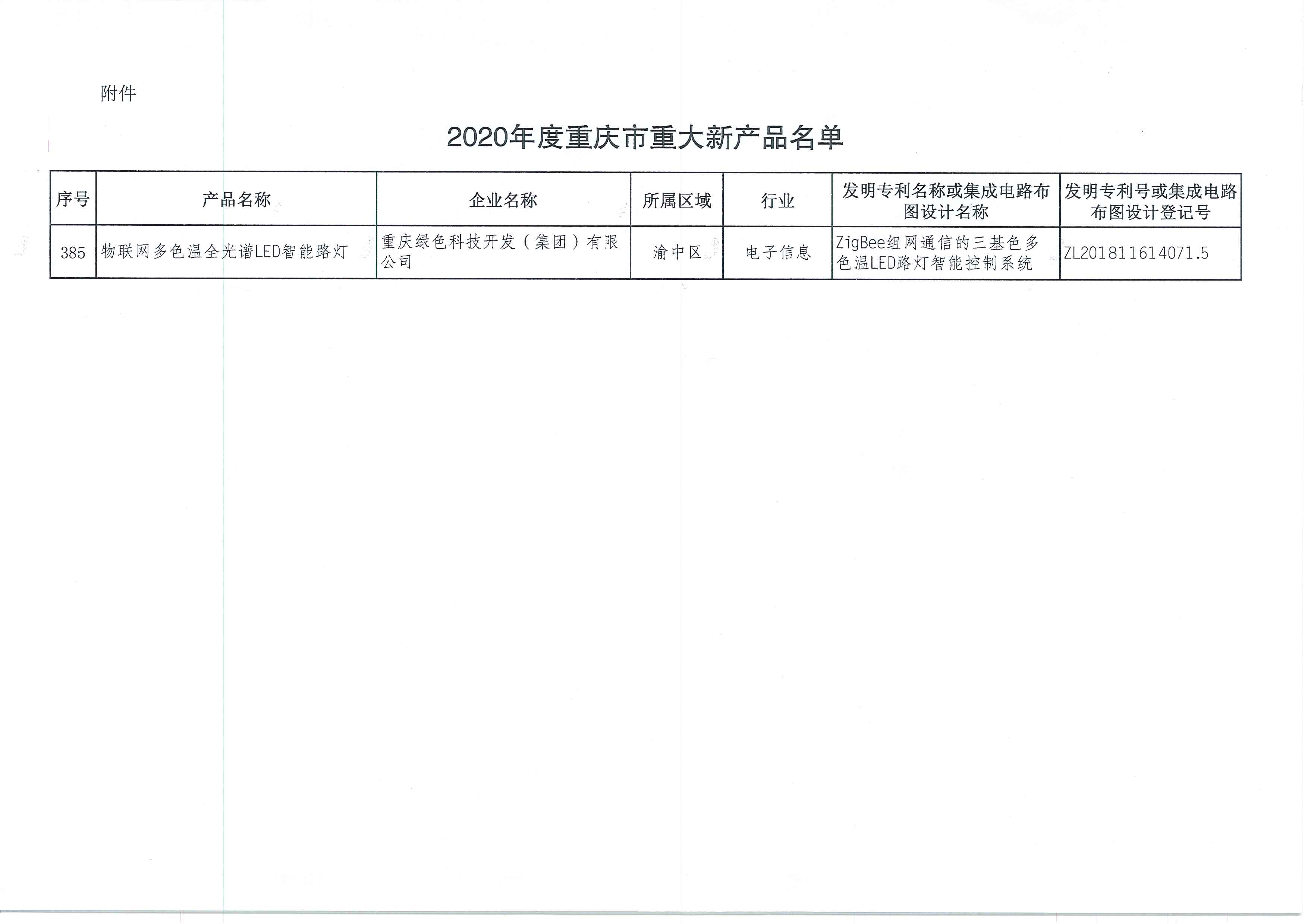 物聯(lián)網(wǎng)多色溫全光譜LED智能路燈產(chǎn)品榮獲《2020年度重慶市重大新產(chǎn)品》